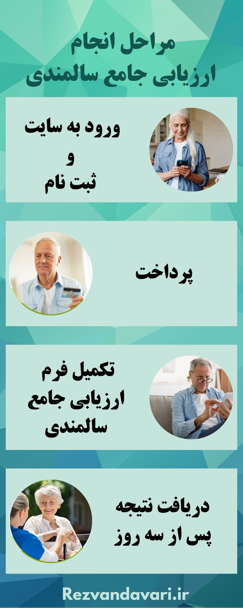 3- تکمیل فرم ارزیابی جامع سالمندی: فرم آنلاین ارزیابی را در سایت ما تکمیل کنید تا اطلاعات اولیه مربوط به وضعیت سلامت سالمند ثبت شود.
